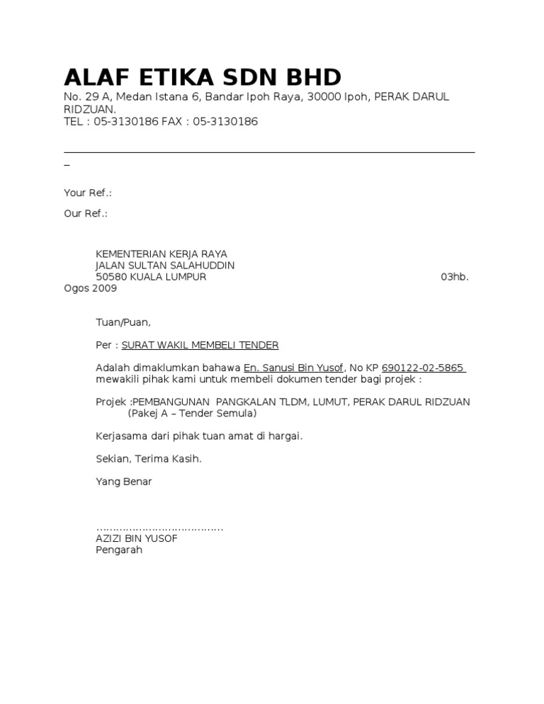 Contoh Surat Wakil Kuasa Urusan Jpj Sebutharga Bank Myeg Lhdn Majikan Keptennews Com